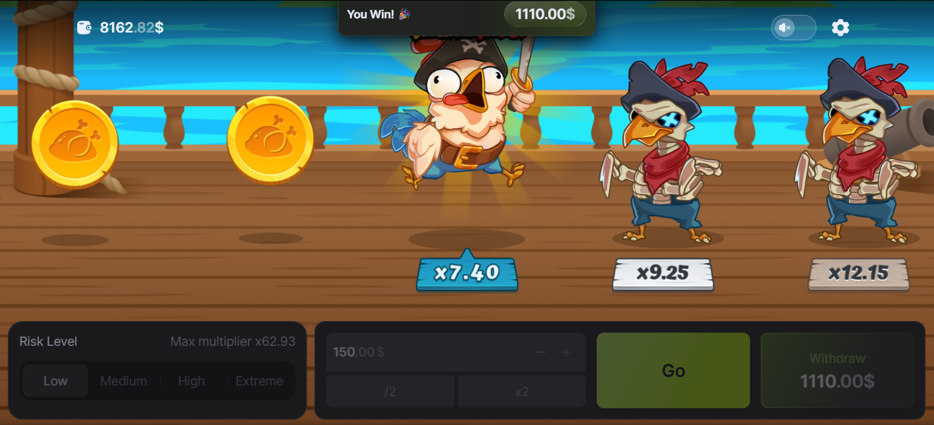 The learning curve in Chicken Pirate is gentle but unforgiving. You quickly realize that timing is everything. You can’t just “let it ride” forever. The thrill comes from gauging the risk: when do you cut your losses, and when do you ride the wave for bigger multipliers?